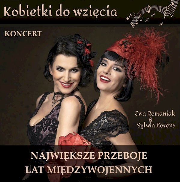Zapraszamy na nastrojowy koncert „Kobietki do wzięcia”, inspirowany klimatem dwudziestolecia międzywojennego. Dwie charyzmatyczne artystki – Sylwia Lorens i Ewa Romaniak – przeniosą publiczność w świat dawnych szlagierów, anegdot i subtelnego humoru, łącząc elegancję, lekkość i kobiecą energię.
