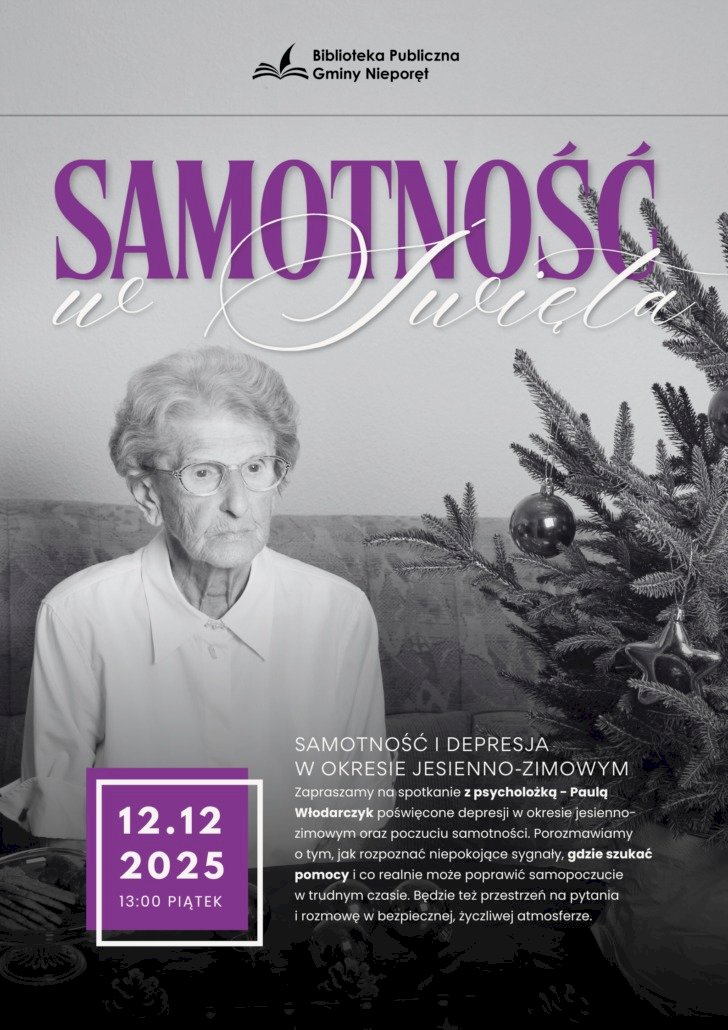 Biblioteka Publiczna Gminy Nieporęt zaprasza na inspirujące spotkanie z psycholog Paulą Włodarczyk pt. „Samotność i depresja w okresie jesienno-zimowym”.
