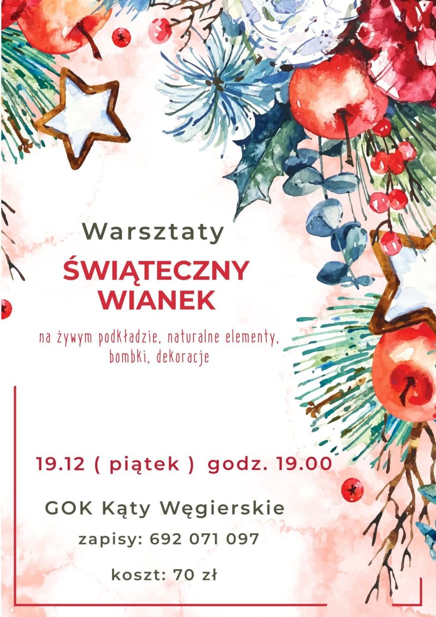 Spotkanie odbędzie się 19 grudnia (piątek) o godz. 19:00 w GOK Kąty Węgierskie.