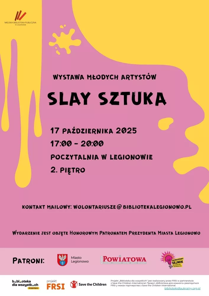 Wystawa odbywa się w ramach projektu „Biblioteka dla wszystkich”, realizowanego przez Fundację FRSI we współpracy z Save the Children Poland w ramach Programu Rozwoju Bibliotek 2025–2026, wspierającego biblioteki publiczne jako centra aktywności społecznej