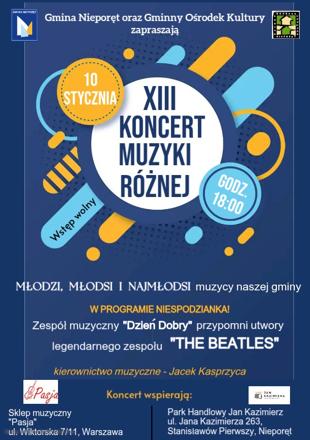 Gmina Nieporęt oraz Gminny Ośrodek Kultury zapraszają na XIII Koncert Muzyki Różnej
