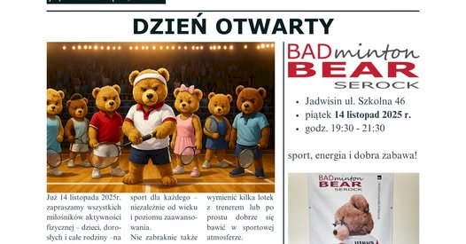 Dzień Otwarty Klubu BADminton BEAR Serock to doskonała okazja do poznania świata badmintona w sportowej atmosferze.
