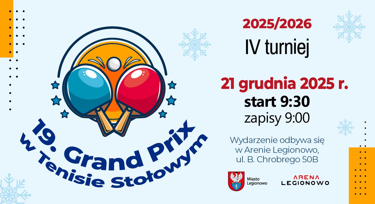 Plakat z niebieskim tłem i skrzyżowanymi rakietkami do tenisa stołowego